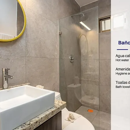 Modern Apartment In Playa Del Carmen, 1 Bedroom includes a balcony and a terrace with an air conditioner for utmost comfort. For added convenience, a separate toilet, a shower, and a washing machine are available at the accommodation.